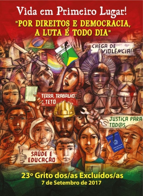 cluídos.org), “a proposta do Grito surgiu no Brasil no ano de 1994 e o 1º Grito dos Excluídos foi realizado em setembro de 1995, com o objetivo de aprofundar o tema da Campanha da Fraternidade do mesmo ano, que tinha como lema ‘Eras tu, Senhor’, e responder aos desafios levantados na 2ª Semana Social Brasileira, cujo tema era ‘Brasil, alternativas e protagonistas’”. O movimento foi ganhando força e chegou, em 2017, a sua 23ª edição, com o tema Por direitos e democracia, a luta é todo dia!