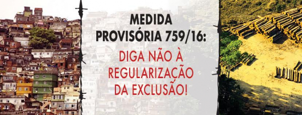 Com a MP 759, a violência no campo ganhará uma dimensão ainda maior. A medida estabelece regras para a legalização de terras da União ocupadas na Amazônia Legal. Isso significará mais desmatamento, mais concentração de terras nas mãos de grandes latifundiários e empresas. Também autoriza a venda de terras para estrangeiros, coloca em risco a Floresta Amazônica, acaba com as áreas de preservação ambiental e atenta contra a segurança dos povos do campo, da floresta e das águas, indígenas e quilombolas. Além disso institucionaliza a grilagem de grandes áreas, inclusive as consideradas unidades de conservação, e fragiliza o licenciamento ambiental. A MP recebeu mais de 700 emendas ao longo da tramitação, porém continuou com graves ameaças à função social da terra.